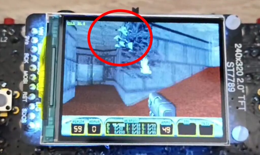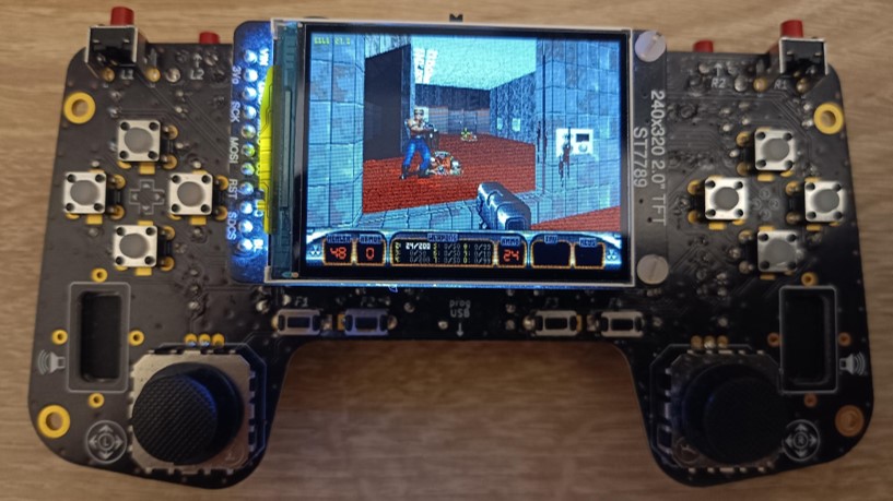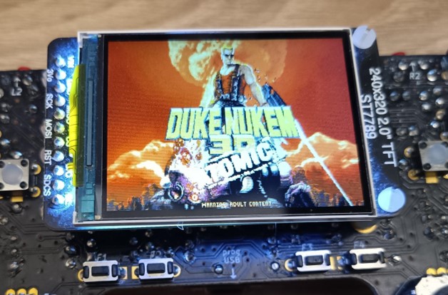 We did find at least an example of DN3D being ported to ESP32 chips (such as https://github.com/jkirsons/Duke3D), which uses 4 MB of PSRAM. After analyzing the code, we found that aside from hardware configuration differences, the main optimization was placing certain data and functions in faster internal SRAM instead of flash (which is QSPI and significantly slower). Other than that, the code is essentially identical to the Chocolate DN3D sources. That port runs at a resolution of 320×200 pixels, apparently without music, and multiplayer seems to be disabled (although the code exists, Chocolate DN3D enables multiplayer only via CLI or config file).
