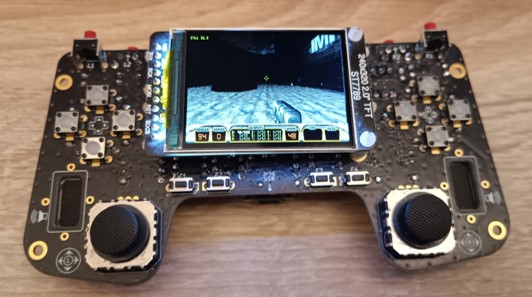 This time, we did not use any new hardware. The port supports both consoles we developed previously: the Gamepad, based on the Arduino Nano Matter, and the earlier version using the SparkFun Thing Plus Matter. The full DN3D GRP 1.3D file fits within the 32 MB flash, leaving a few megabytes available for settings and save games. The Atomic Edition, however, requires 45 MB, so two 32 MB flash ICs are needed.