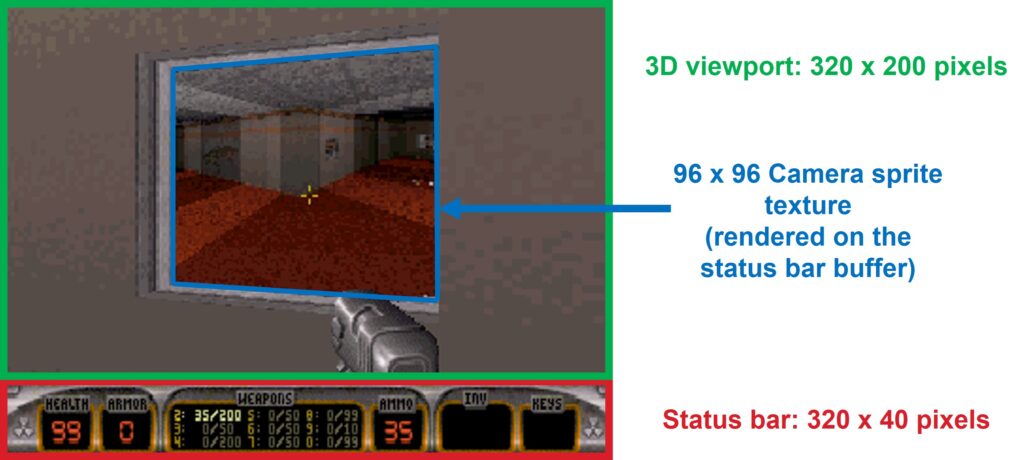 - Support for the full display resolution (320×240 pixel) instead of just 320×200 as we did for Quake. The constraint about resolution includes the status bar.