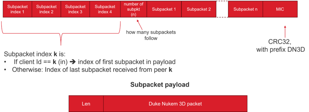In this way, each peer communicates both what it is transmitting and how many packets it has received from others. Conversely, receiving peers can infer which of their sent subpackets have been successfully received and processed.