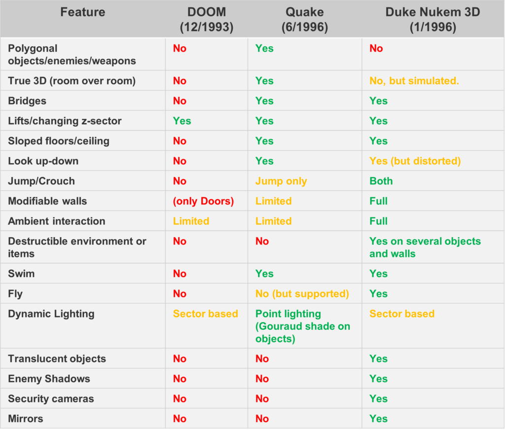 - Quake is more advanced graphically and it was a radical change with respect the plethora of Doom-like engines (despite DN3D and Doom have a different engine, one based on passages other on BSP, they are both considered as 2.5D as opposed to true-3D engines). This was a high-risk high-reward project: the success was uncertain, but the result would have been much more impressive than porting DN3D.