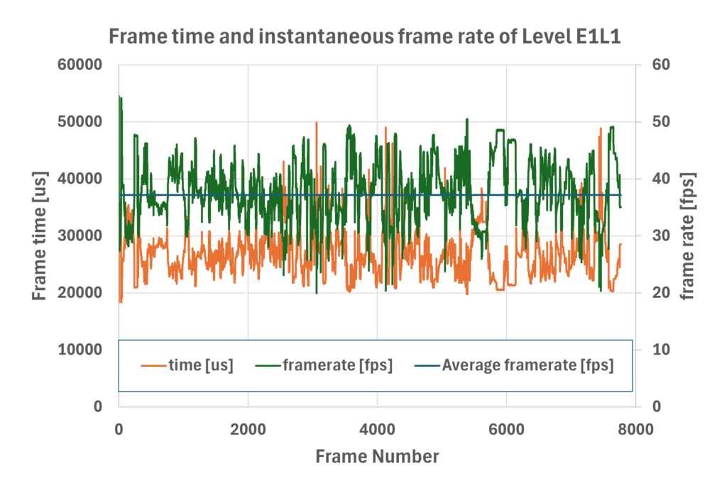 We used the E1L1 level as a benchmark and waited until the exploding ship crashes, allowing the frame rate to stabilize.